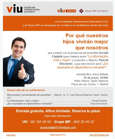 Mañana 26 de Junio a las 19 horas no te puedes perder esta conferencia que imparte Grupo IMF Formación y VIU en el Hotel Palace.